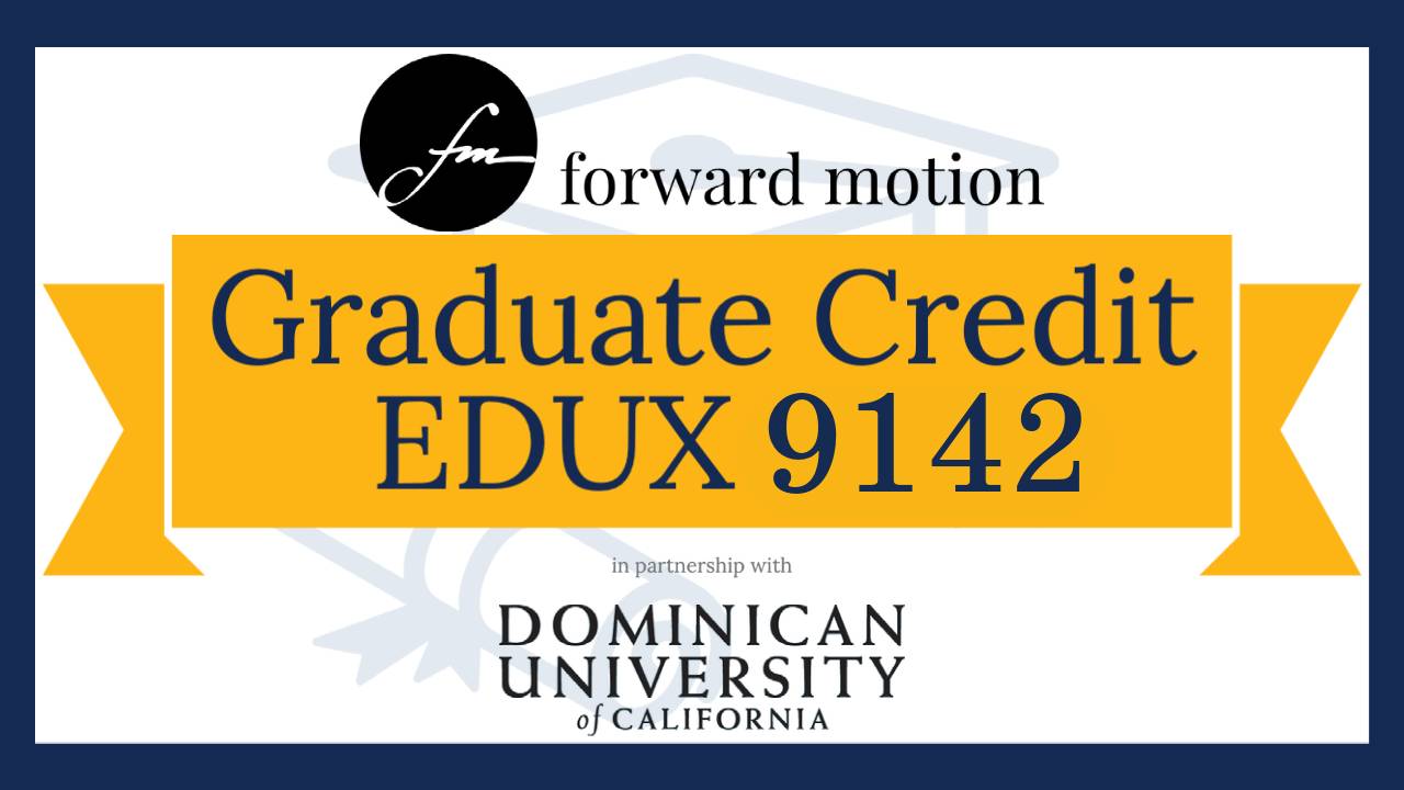 Forward Motion awards academic credit in partnership with Dominican University of California. Graduate-Level Extension Semester Credits/Units are primarily used for professional development or salary advancement and are transferable to degree programs only on the approval of the institution being petitioned. The words credits and units are used interchangeably as geographical locations vary in terminology. Participants are advised to obtain prior employer approval for use in salary advancement. Dominican University of California is accredited by the Western Association of Schools and Colleges (WASC).